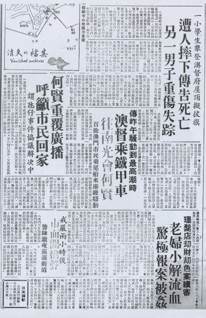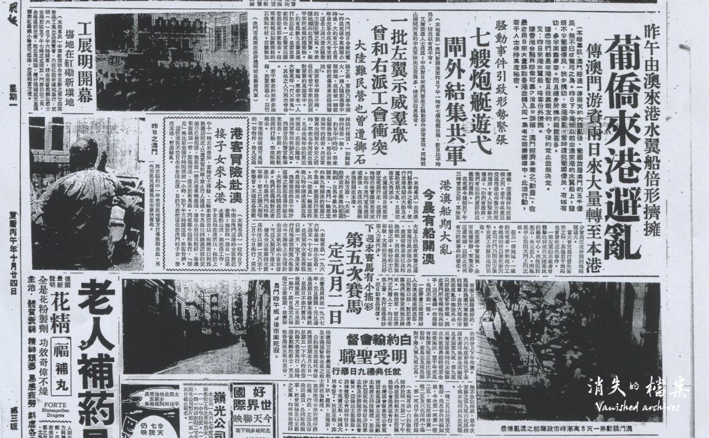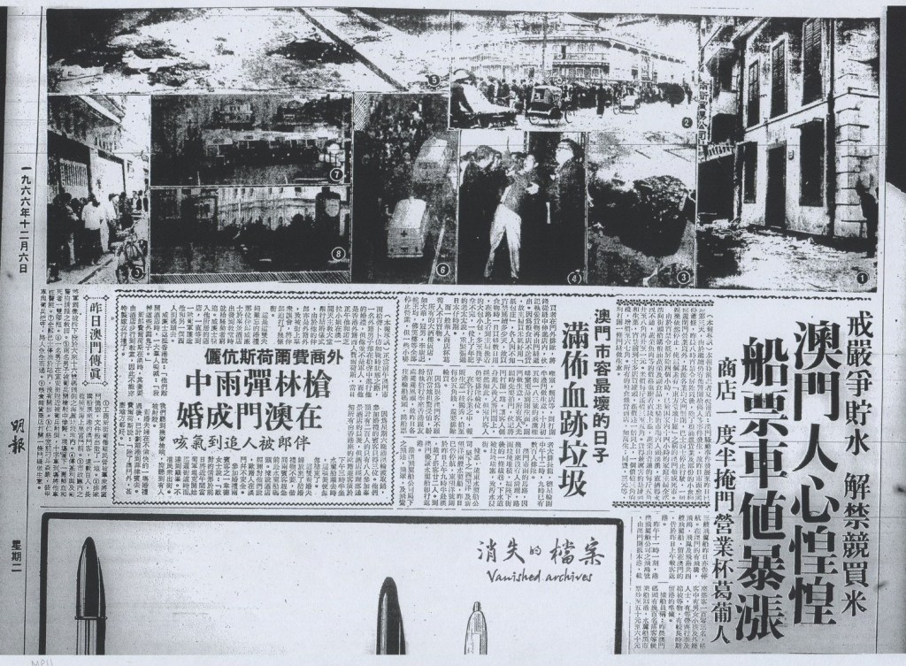 右上:《工商日報》1966年12月6日 暴動後的澳門