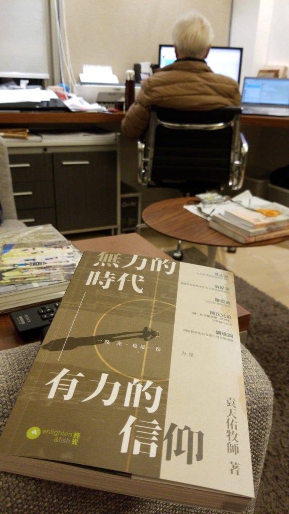 2018年12月袁牧出版《無力的時代,有力的信仰》,筆者代送書。圖為趕稿中的李怡。