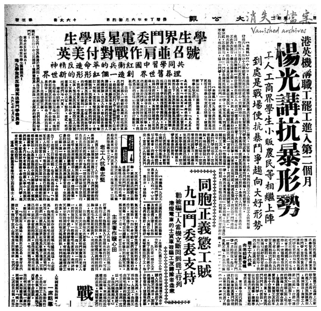 (編按:「反英抗暴」徹底失敗,港共對濫殺無辜至今毫無反省。楊光2001年獲頒大紫荊勳章後,土共更推諉清華街小姐弟及林彬之死與他們無關。又巧言令色,將「先暴後鎮」,即先暴動後被鎮壓,說成是「先鎮後暴」,即先鎮壓後暴動。這些歪理不停在群眾中散播,就是他們對歷史的交代,彷彿謊言說100遍就變成真理。