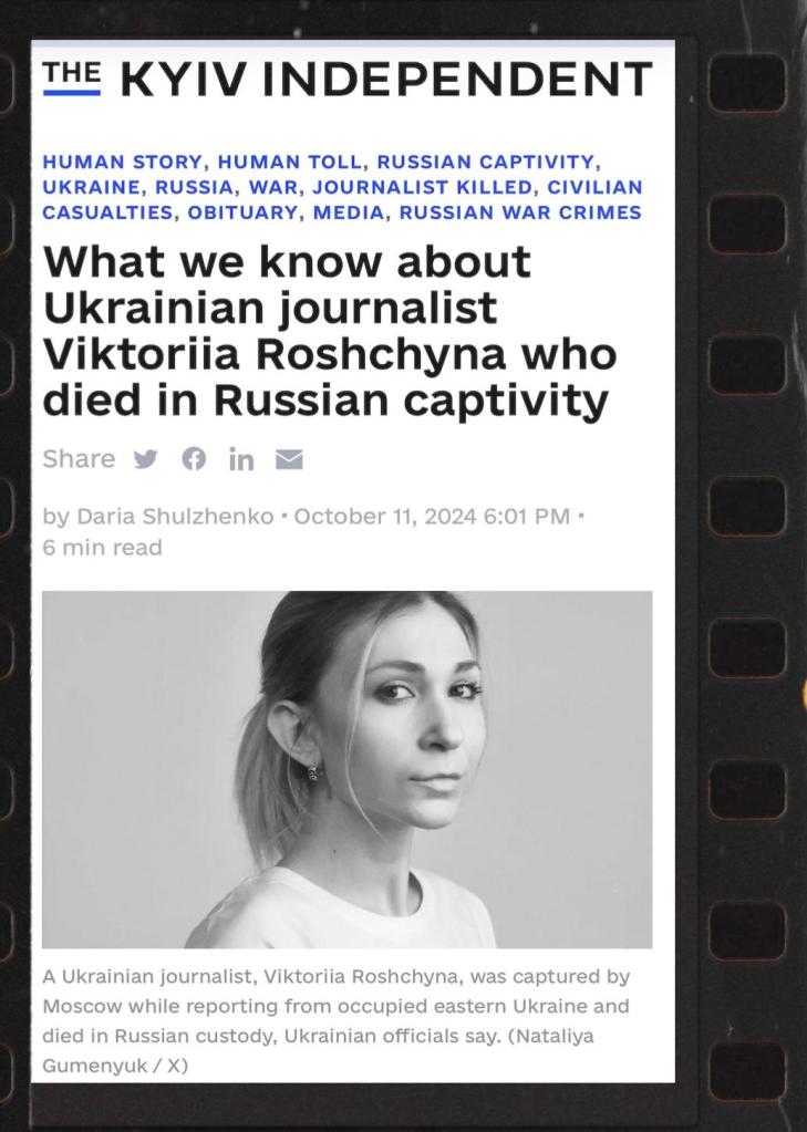 #烏克蘭 #ViktoriiaRoshchyna #戰地記者 #遺體失去眼球大腦 #戰爭罪行 #Taganrog_SIZO2監獄 #Zaporizhzhia #俄羅斯聯邦安全局FSB #烏克蘭真理報 #SevgilMusaieva #烏克蘭公共廣播電台 #自由歐洲電台 #消失的檔案