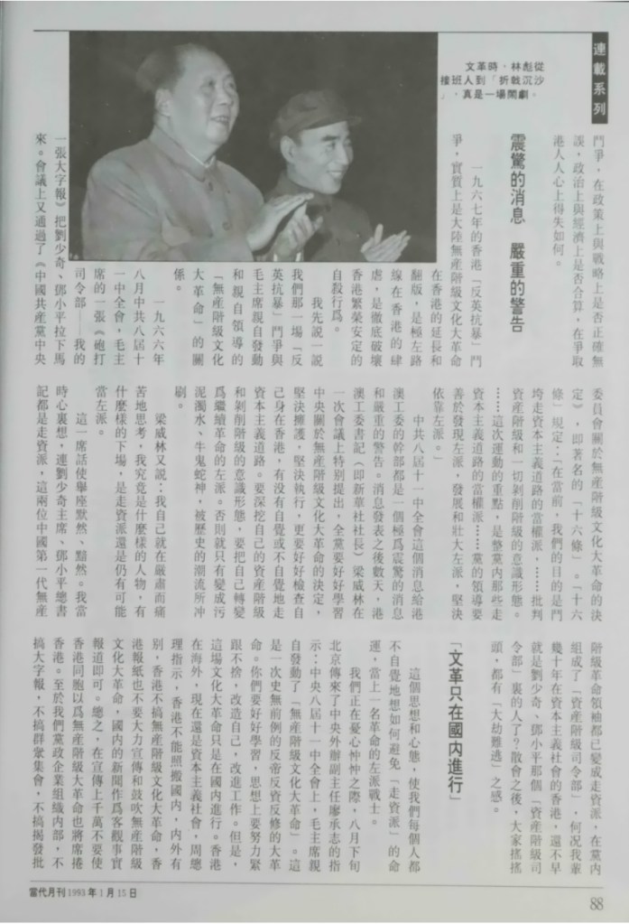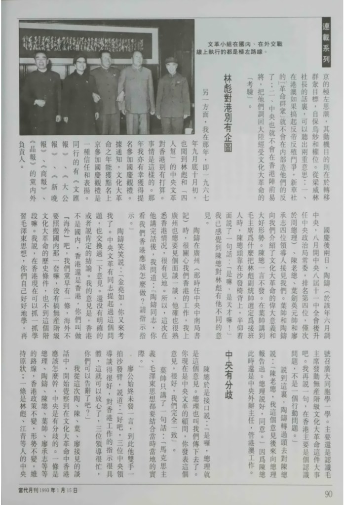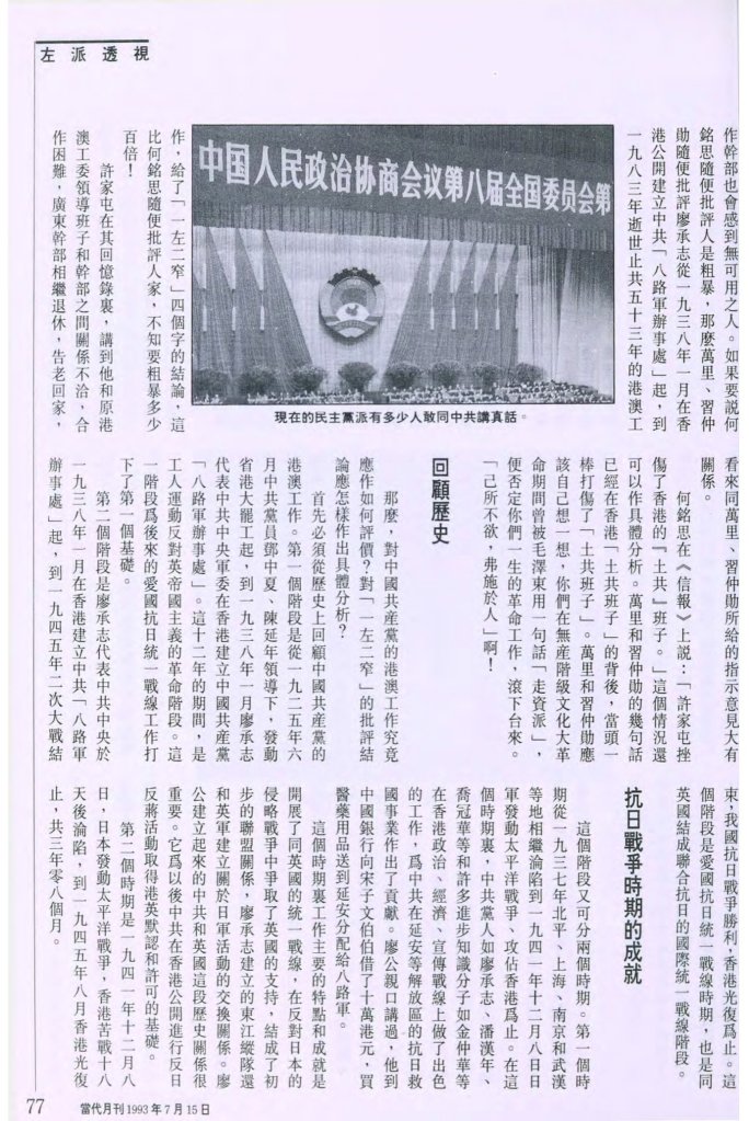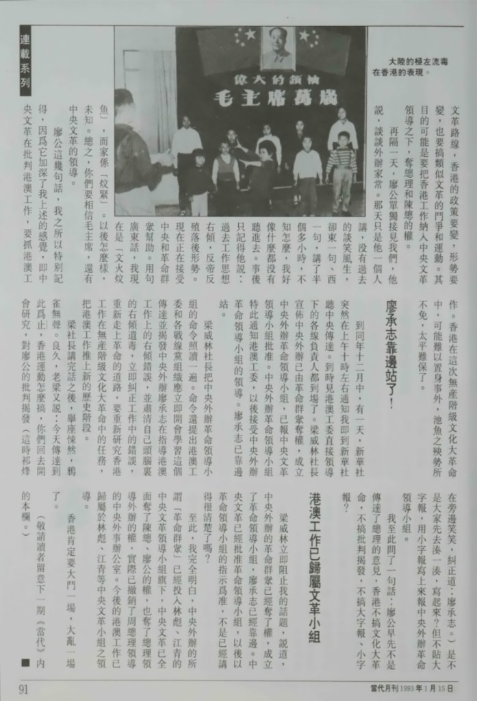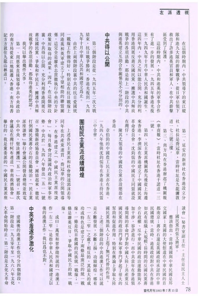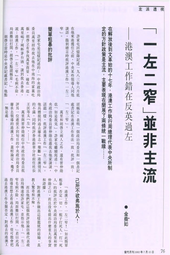 這裡連載的是金堯如於1993-1994年於《當代》周刊發表的「反英抗暴」回憶,共12篇。金堯如是當年港共輿論戰的領導,他記憶力強,抗暴背後的角力峰迴路轉,曲折離奇,是重要歷史補遺。