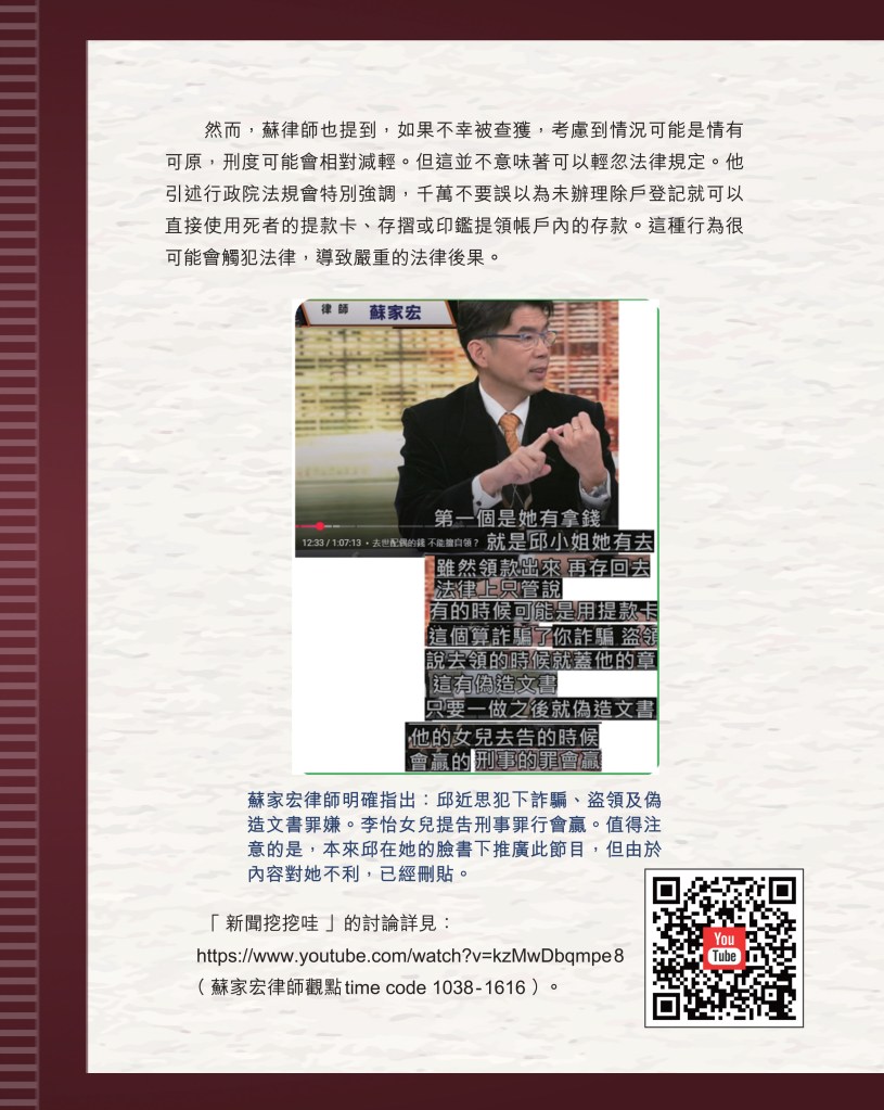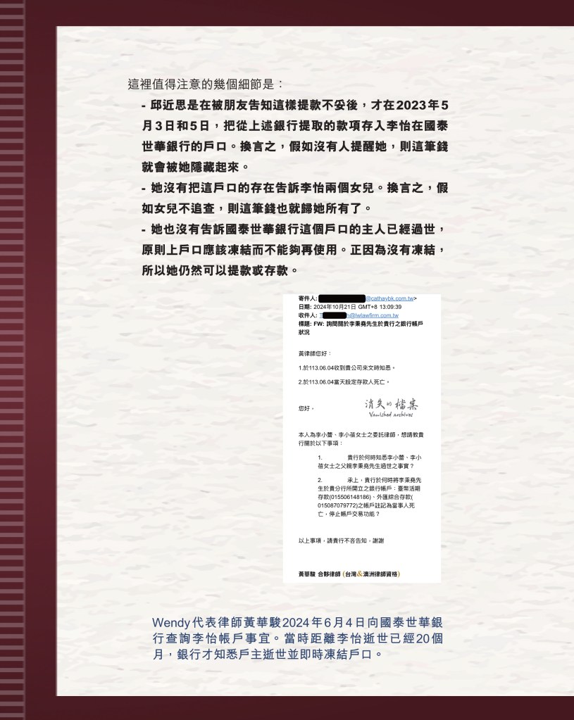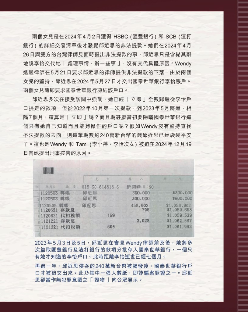 #可以休矣邱近思 #邱近思 #詐騙 #盗取 #偽造文書 #刑事調查 #匯豐銀行 #渣打銀行 #國泰世華銀行 #蔡慧玲 #蘇家宏 #邱近思 #我與李怡 #創作後三篇 #黃瑾瑜 #印刻文學 #初安民 #李怡遺產案 #程翔 #李怡 #失敗者回憶錄 #李小蕾 #李小蓓 #照顧者阿安 #消失的檔案