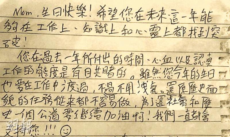 還有已經移民加拿大的前學友社主席梁慕嫻,當年負責動員和組織「灰線」學生(即就讀官津補私學校的學生)。對方在訪問前的電郵裏寫道:「聽說你們來訪問,我高興之餘卻又擔心,一方面高興終於有人做這件事,這是我多年的願望,但另一方面是恐怕我已不能勝 任,能講這麼多話嗎?」這位術後虛弱的七旬長者,主動要求向香港市民道歉,撑着病體深深鞠躬。