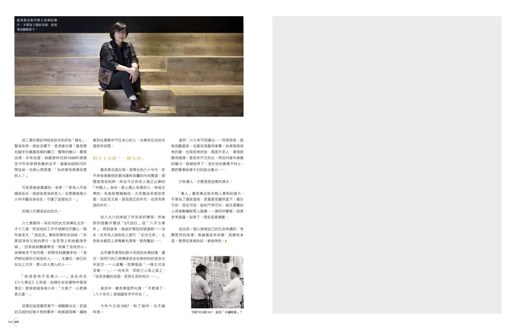可是更教她震撼的,是善。「香港人不認識吳荻舟,他卻是香港的恩人。在那樣風風火火中不顧自身安危,守護了這個地方。」