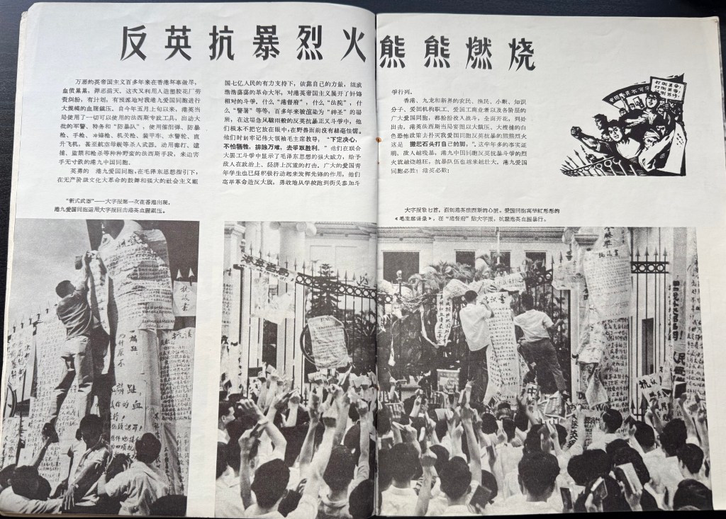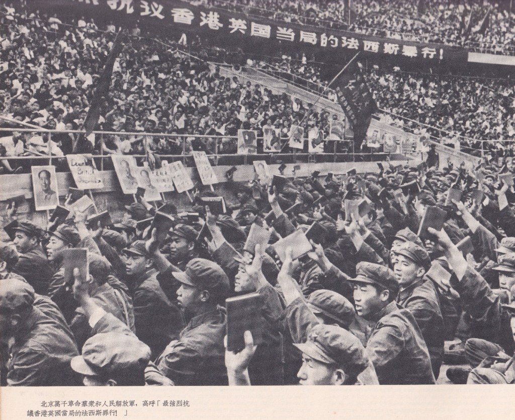 把這次事件稱為「香港式的文化大革命」,那是非常恰當的。那時候國內文化大革命已進行了一年,紅衛兵和造反派鬧得無法無天,極左的狂熱思潮煽起-「武鬥」,各地普遍蔓延,正在沒完沒了地發展著。這種局面對香港的左派群眾有很大影響,他們躍躍欲試,正如鋪滿乾枝枯葉的一座森林,不管怎樣掉來的火種都會燃起熊熊烈火,以至不可收拾。1967年5月6日九龍新蒲崗「香港人造塑膠花廠」發生的勞資糾紛,就起了這種導火線的作用。本來是一椿勞資糾紛,但由於港英的武裝警察對工人進行鎮壓,事情立即變了性質,左派群眾表示同情工人,前往慰問,絡繹不絕,變成向港英抗議的示威行列。接著,狂熱的人群又衝向港督府,手持《毛主席語錄》高聲抗議,同時在港督府四周墻壁貼上抗議書和大字報。港督府連續三天陷入大字報的汪洋大海中,這顯然是國內紅衛兵的行動搬到香港來表演了!