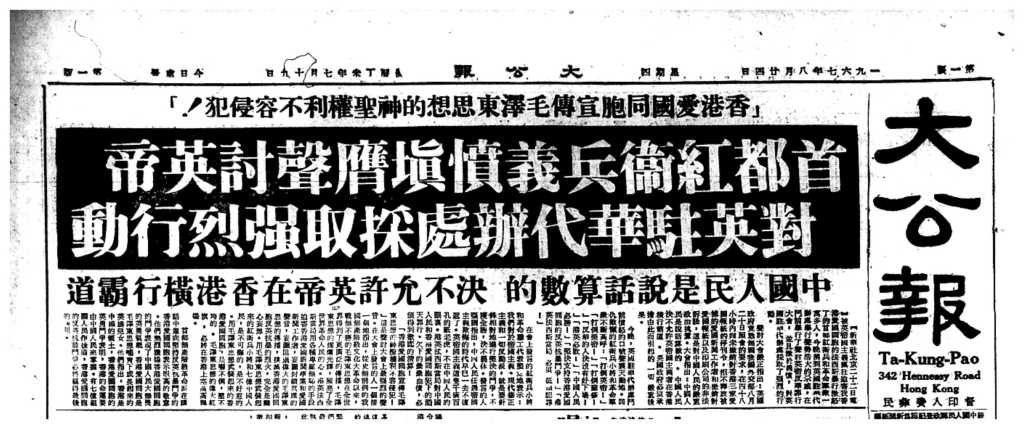 1967年8月22日火燒英國代辦處,是文化大革命期間對外關係的一件大事,曾經哄動一時;其起因為港英封閉三家報紙,所以也是「反英抗暴鬥爭」的一段插曲。