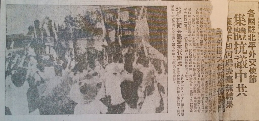 雙方交手的激烈程度向前推進了一步。1967年8月20日,中國外交部西歐司負責人召見英國駐華代辦霍普森,遞交一份外交部照會,要求英國政府和港英當局必須在48小時內撤消對《香港夜報》、《田豐日報》、《新午報》的停刊令,無罪釋放獄中愛國新聞工作者。接著在8月22日,北京紅衛兵和造反派一萬多人,浩浩蕩蕩地前往英代辦處舉行示威,在門前舉行大會,並發生了火燒英代辦的行動。嚴家祺和高皋編著的《中國「文革」十年史》是這樣報導的:「首都無產階級反帝反修聯絡站牽頭組織了就香港英國當局迫害我駐港新聞工作者事件在英國代辦處召開了首都無產階級革命派憤怒聲討英帝反華罪行大會,發生了衝進英代辦處進行打、砸、抄活動,放火燒了汽車及代辦處辦公樓的嚴重外交事件。」(見該書第253頁)。
