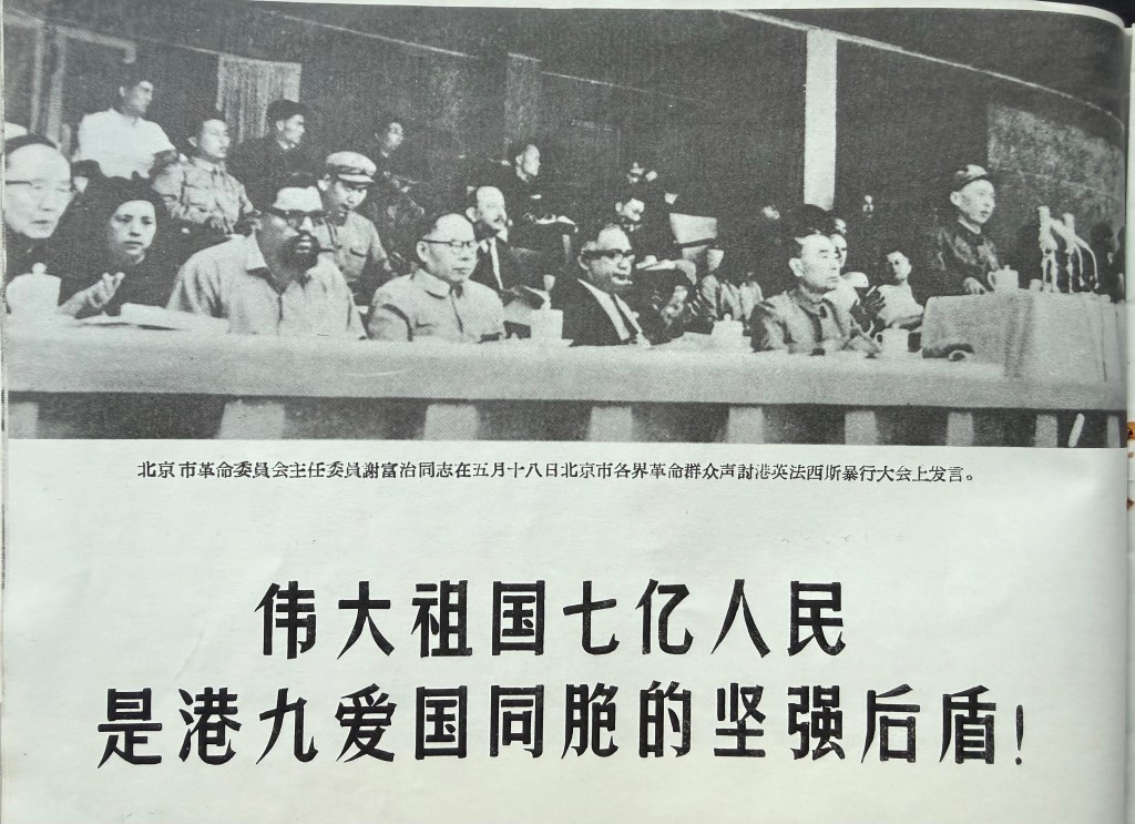 北京是支持這場鬥爭的,但不是無條件支持或全面支持,有些地方甚至是不支持的。周恩來說過「迫中央上馬」這句話,顯然帶有無可奈何的口氣。國內的方針既是「不馬上收回香港」,鬥爭若超過一定的限度,那就要加以制止了。國內不同意陳兵邊境;屢次勸阻邊境造反派過境採取行動;始終沒有提供軍械炸藥給香港左派;周恩來下令停止真假炸彈陣等等措施,可為明證。