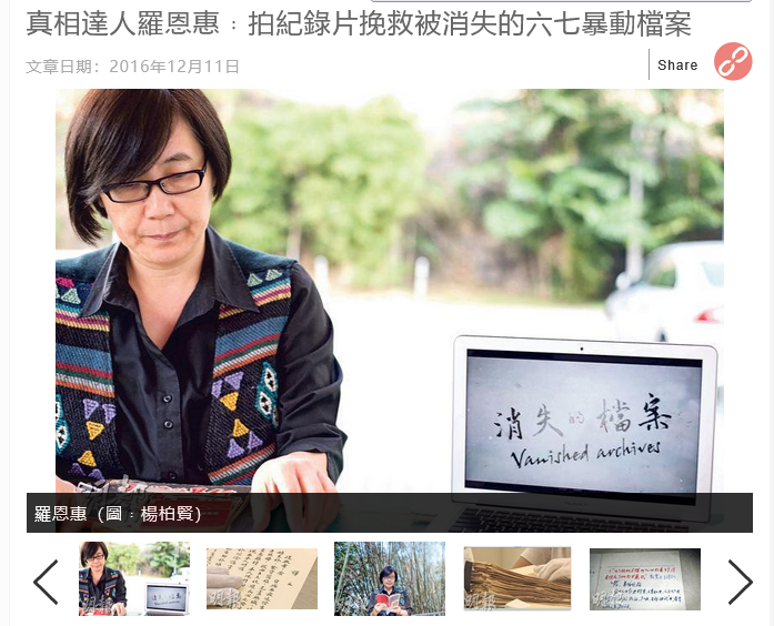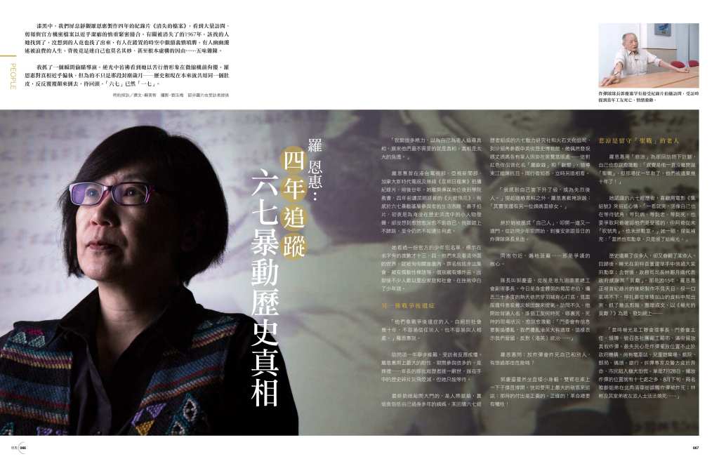 羅恩惠對真相的執着近乎潔癖,筆下每個情節都用很多力氣從海量資料中爬梳出來。製作紀錄片的四年中有八個月,她像上班一樣差不多天天跑歷史檔案館,從早到晚查證六七暴動的事實。惟事實已經消失。
