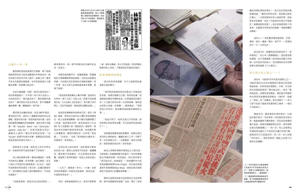可是更教她震撼的,是善。「香港人不認識吳荻舟,他卻是香港的恩人。在那樣風風火火中不顧自身安危,守護了這個地方。」