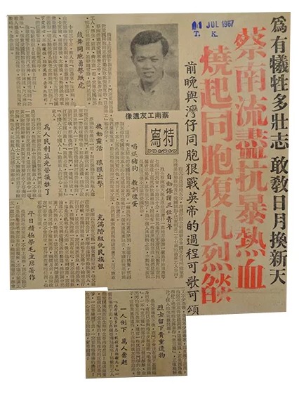 她說的是暴動參與者蔡南之死。當年《明報》報道,蔡南在示威中站上欄杆掟玻璃樽掟石,被人從後開槍擊斃,相片顯示他腰間繫了三角銼,疑是暴徒首領。後來她查到《大公報》和《文匯報》統一發稿的另一個版本:蔡南在悼念活動中發現港英特務,為保護年輕 人與警衝突,腰間中槍致死。文中寫「黃皮豬」、「白皮狗」,也寫「那些豬狗大驚失色, 夾着尾巴,急急遁去」。在受訪老人的記憶中,這些情節生動有如武俠小說,還有人說港英不准收屍,遺體爛掉。羅恩惠不放過傳言,花力氣尋訪死者家屬,透過第三者得到確認:為親人收屍沒遇上困難。