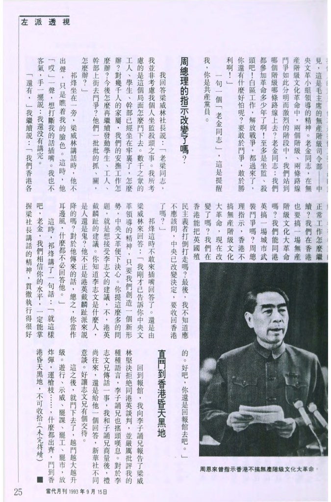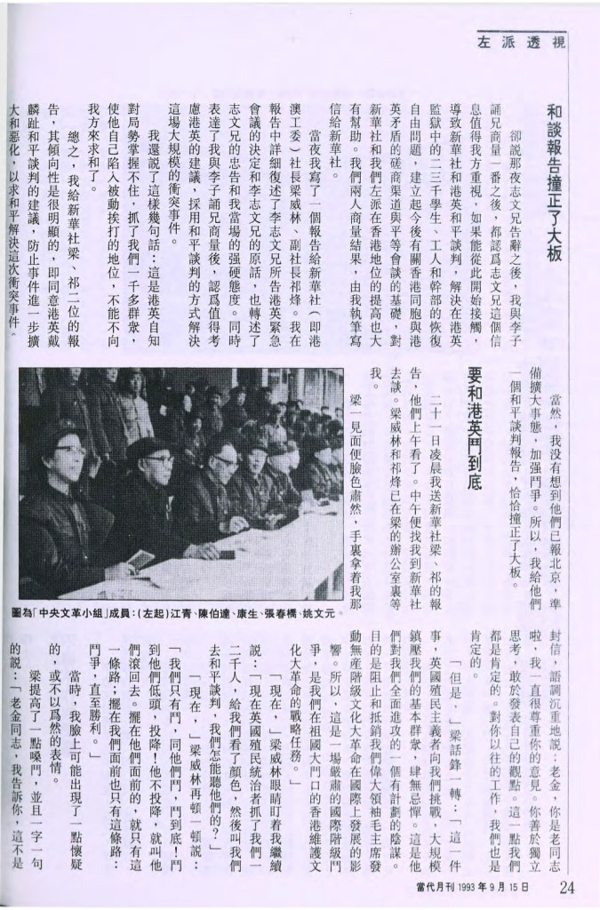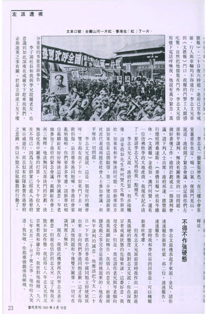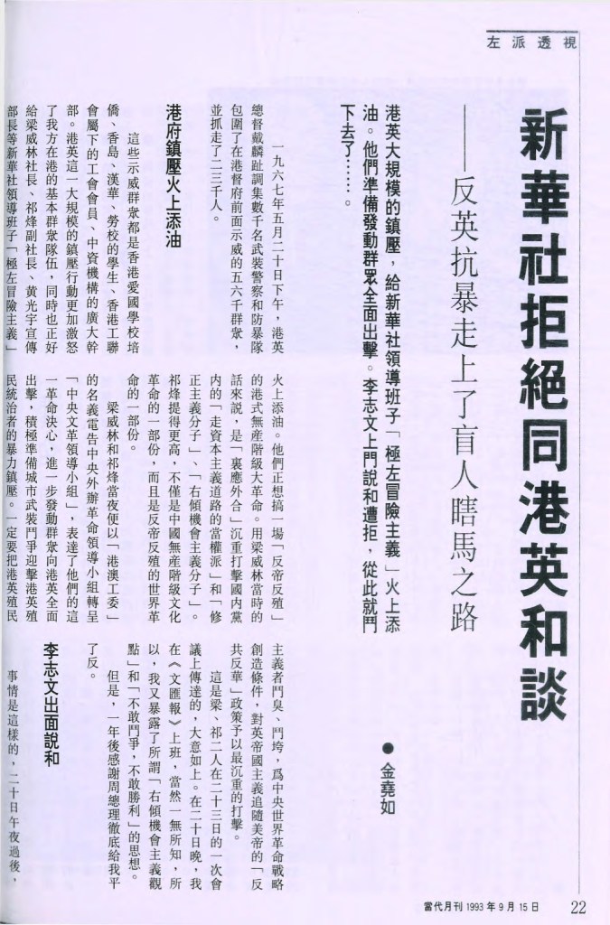 #金堯如回憶錄 #管見子 #香江五十年憶往 #當代月刊 #新華社拒絕同港英和談 #梁威林#祁烽#黃光宇 #六七暴動#反英抗暴 #消失的檔案