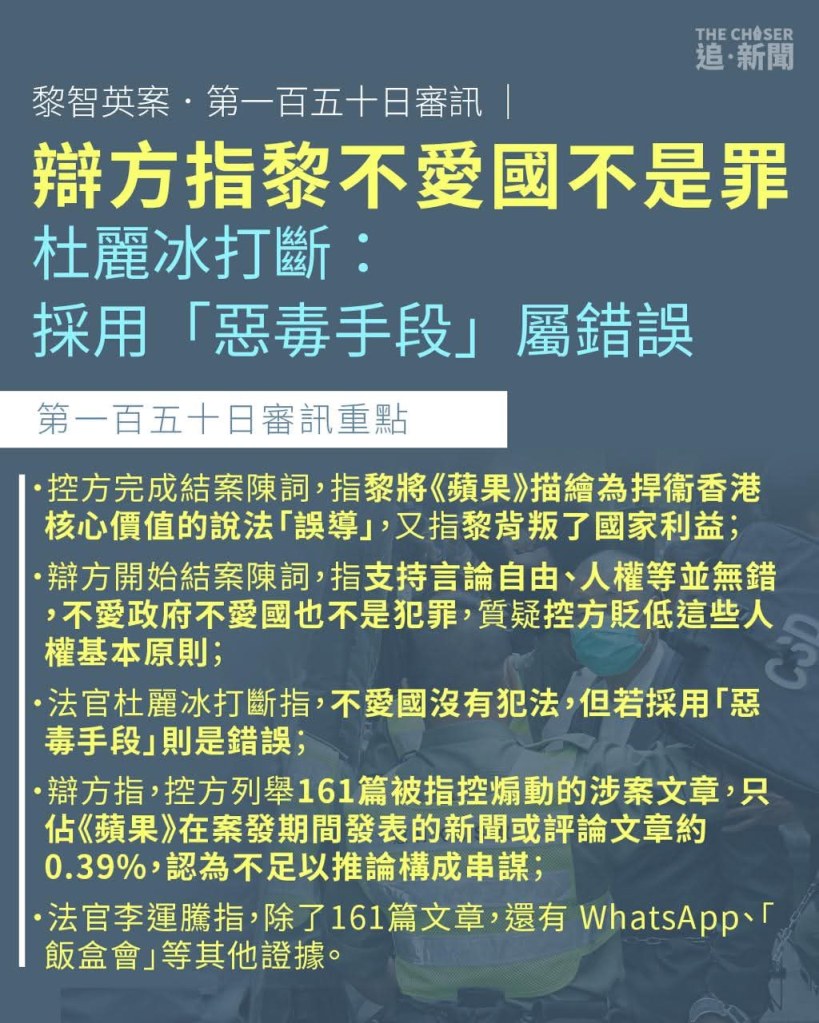 黎智英案結案陳詞,無論主控周天行或國安法指定法官杜麗冰的法理觀念都令人震驚,日日新鮮。